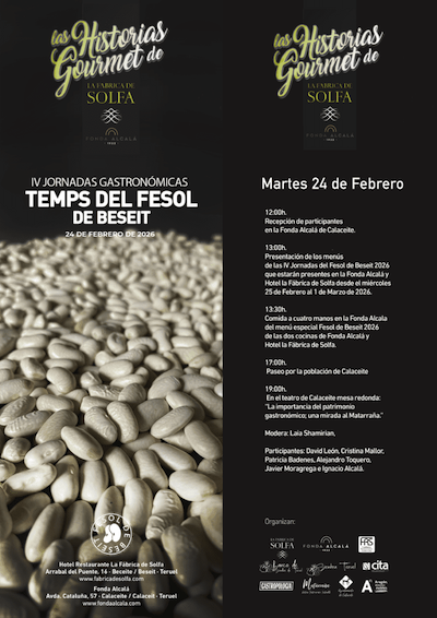 “Puede que el mayor incentivo, especialmente para el viajero que pasa y no se detiene en Calaceite, lo constituya la cocina del matrimonio Alcalá. Su fonda está siempre llena. Se ha hecho famosa y la gente se sienta frente a sus manteles para probar las delicias de una perdiz en escabeche, el arroz con tordos, un estofado guisado con sabiduría o la butifarra con las judías, rehogadas certeramente en el aceite donde se ha frito el embutido.”